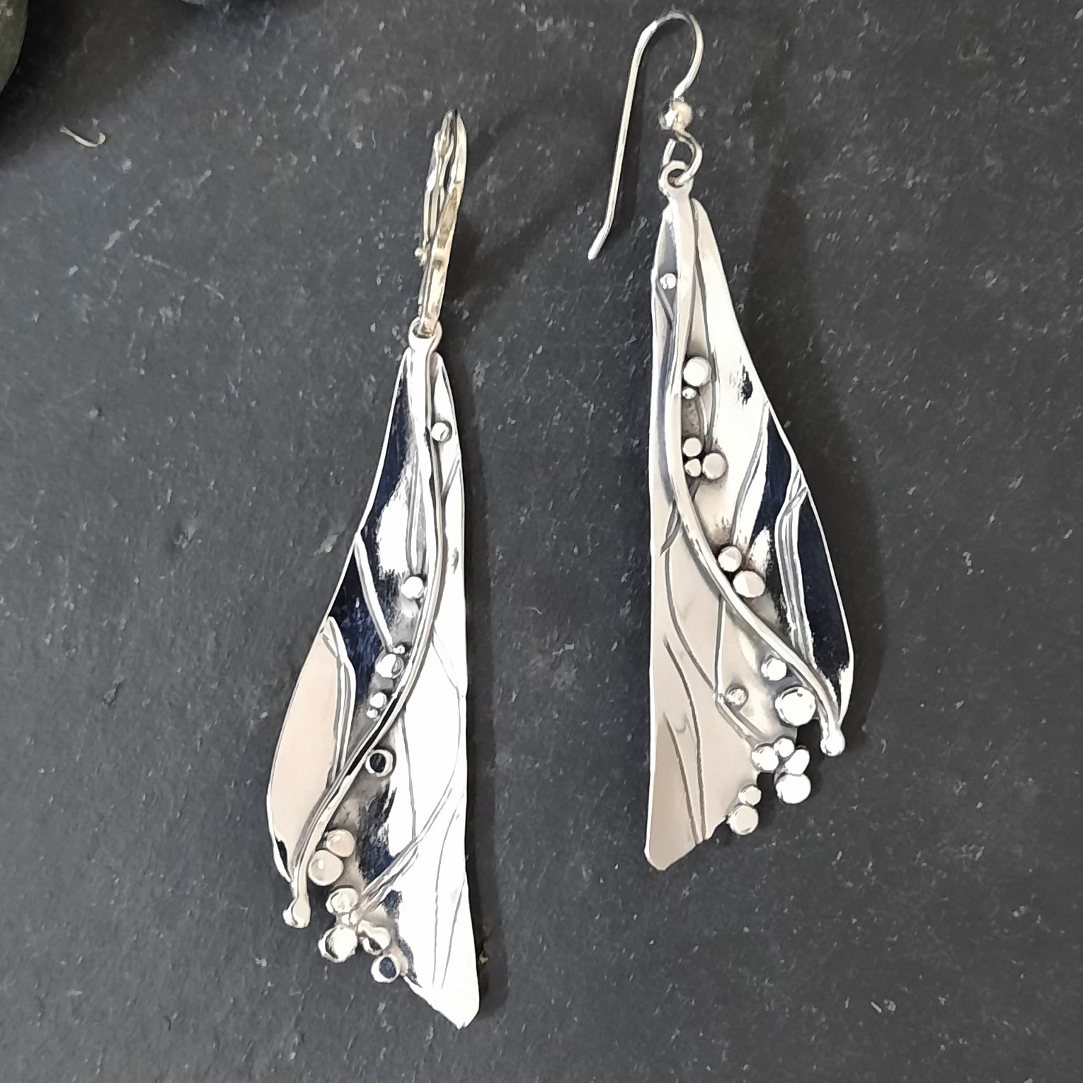 Learn the ins and outs of fusing the new 940 Argentium, fusing wire and granules, roller-printing texture, while creating a dramatic unique earrings or pendant.